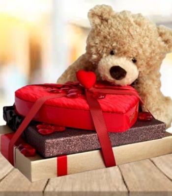 Teddy Bear (Light Brown) 20 Cm Box Of Chocolates 200 Gr (High Quality) Box Of Chocolates 150 Gr (High Quality) Box Of Heartshaped Chocolates 150 Gr (High Quality) Gift Wrapped With Romantic Decor
