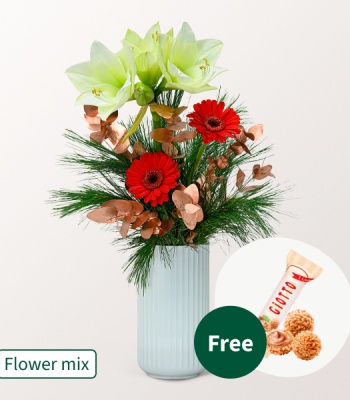 Amaryllis flower bouquet to Belgium A bouquet of amaryllis flowers makes a stunning gift with its bold, trumpet-shaped blooms that symbolize strength, love, and beauty. Perfect for any occasion, these vibrant flowers convey elegance and warmth. Available in red, white, pink, or variegated hues, amaryllis bouquets make a memorable impression. Send one to brighten someone's day in the Belgium. Amaryllis flower Arrangement to Belgium Send a stunning Amaryllis flower arrangement to the Belgium for a vibrant and elegant gift. Known for their bold, trumpet-like blooms in shades of red, white, or pink, Amaryllis flowers bring joy and warmth to any space. Perfect for celebrations or simply brightening someone’s day, this arrangement delivers beauty and sophistication straight to their doorstep. Christmas flower arrangements with Amaryllis Create an elegant Christmas arrangement with Amaryllis by pairing its bold red or white blooms with seasonal greenery like pine branches, eucalyptus, or holly. Arrange in a simple glass or ceramic vase, and add accents like pinecones or berries for a festive touch. Amaryllis' tall, striking stems bring height and drama, perfect for a stunning holiday centerpiece.