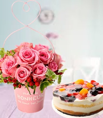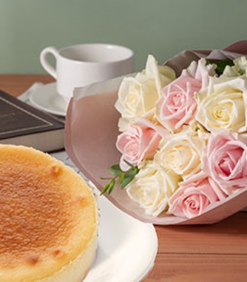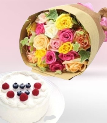 ★Delicious cake and beautiful bouquet★ The rich yet refreshing taste can be enjoyed by both children and adults. *Cake is frozen.Thawing takes for about 4 hours in the refrigerator. This frilly bouquet combines the pure and radiant beauty of the white rose "Avalanche" with pale, translucent pink roses.