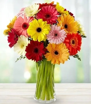Handle the flower package with care so as not to damage the content inside it. Keep flowers and plants in a cool spot away from direct sunlight. Slow watering is preferred.